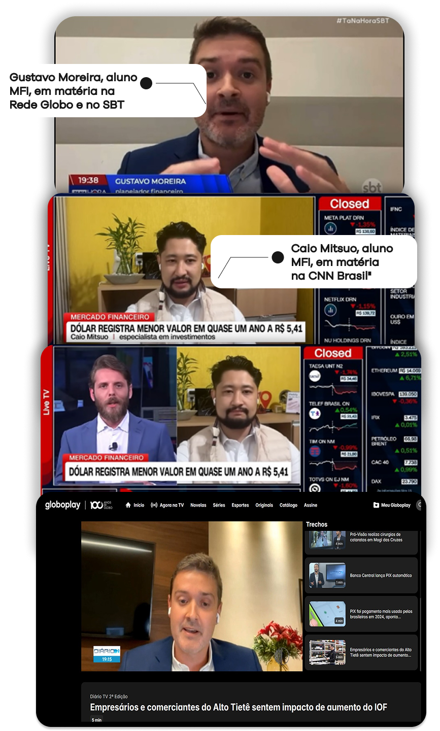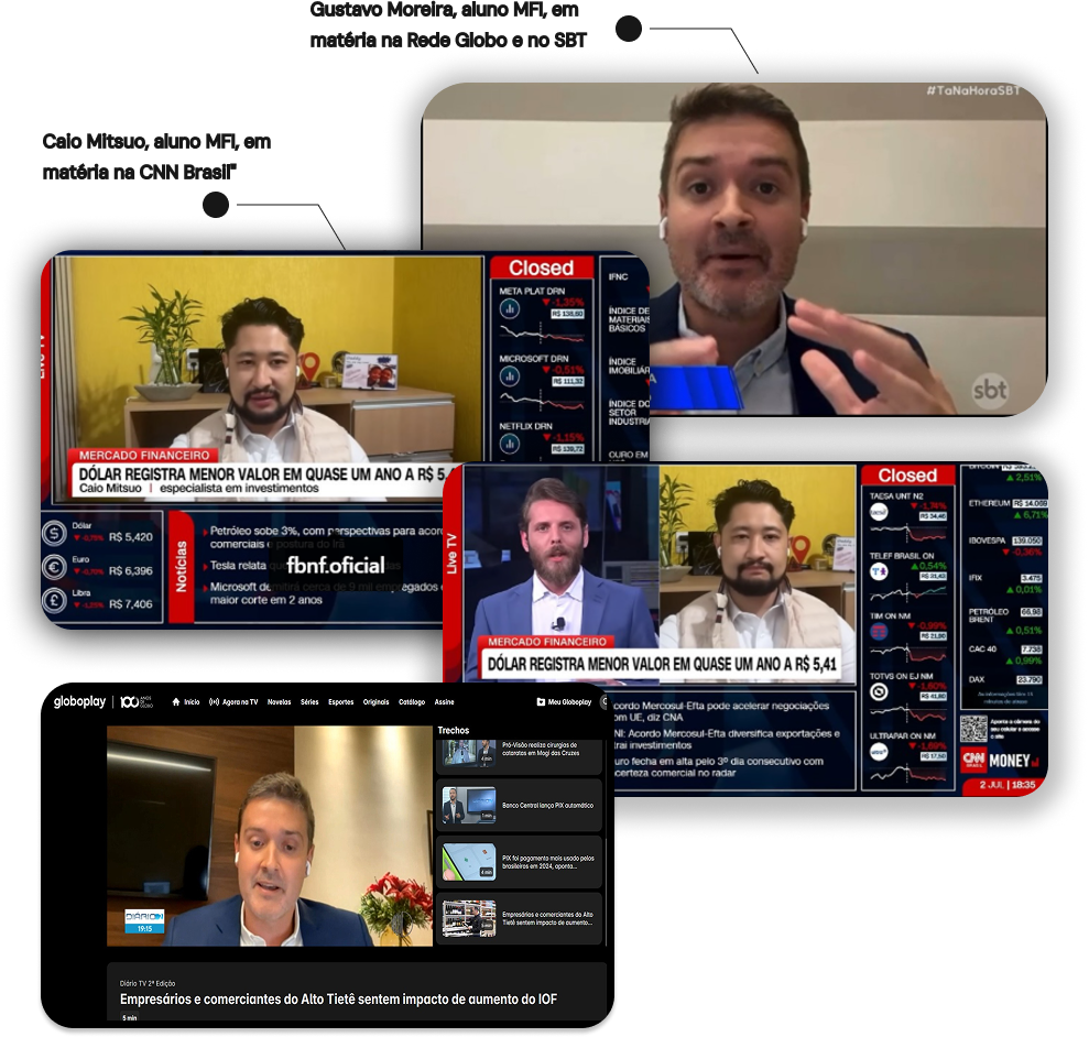 O MBA conecta você a mentores internacionais, profissionais de destaque e oportunidades reais nos mercados onshore e offshore, além de te colocar em uma comunidade de alunos com alta bagagem no mercado financeiro. Um ecossistema pensado para acelerar sua carreira e expandir sua atuação global.